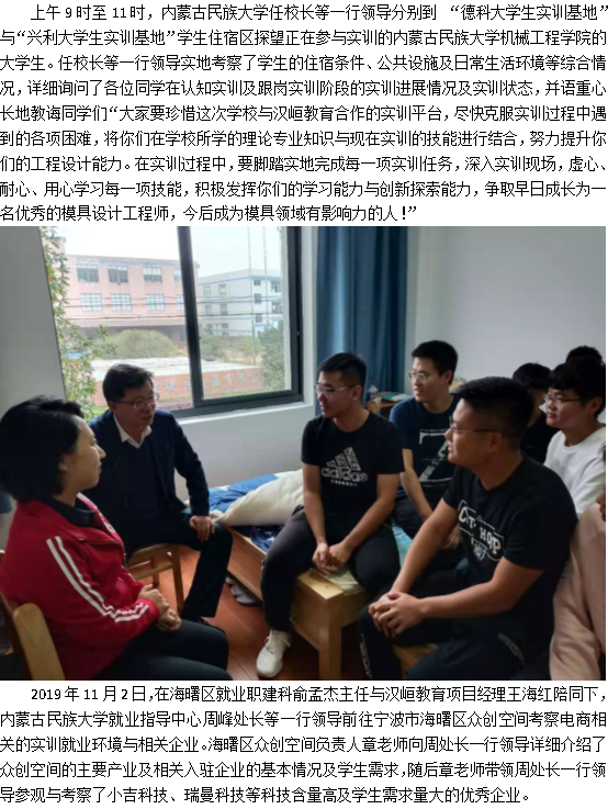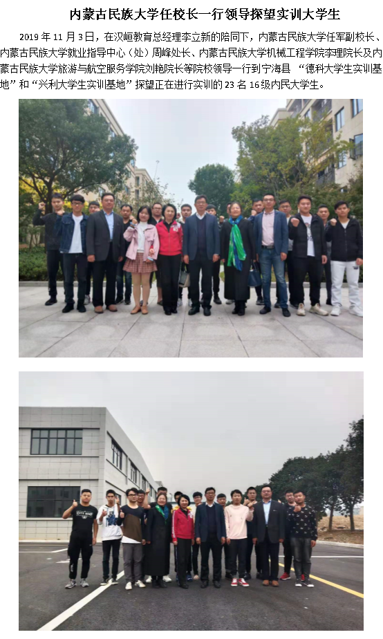 内蒙古民族大学任校长一行领导探望实训大学生