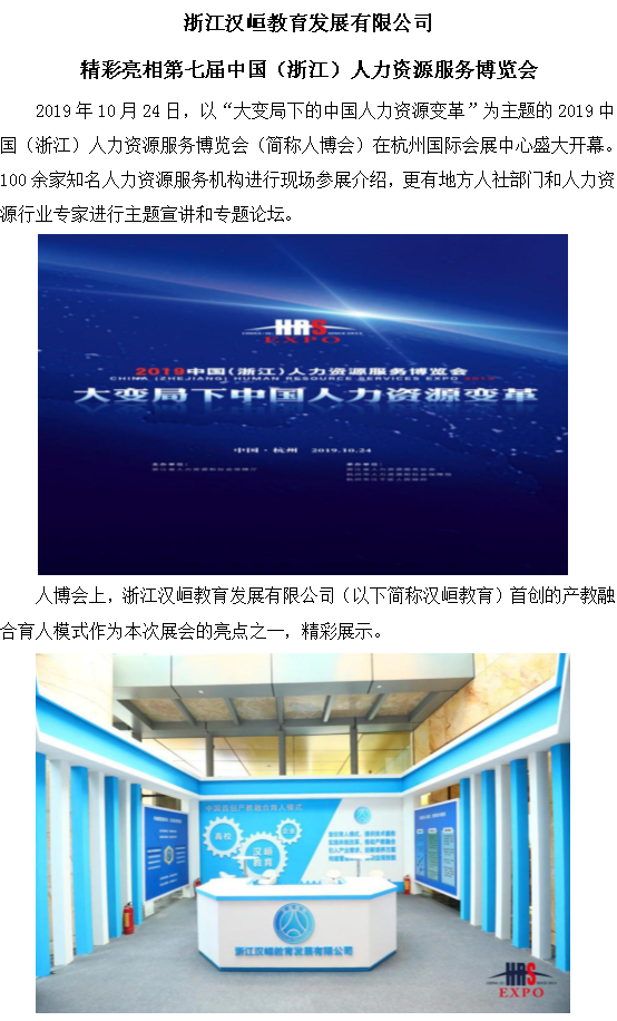 浙江汉峘教育发展有限公司 精彩亮相第七届中国(浙江)人力资源服务博览会